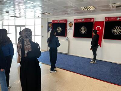 8 Mart Dünya Kadınlar Günü dolayısıyla düzenlenen dart turnuvasına kadın